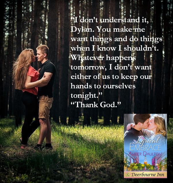 I’m beyond pleased to have fellow author Amber Daulton on the blog today. Her newest book in the Deerbourne Inn Series, Lyrical Embrace, releases today. Check it out!